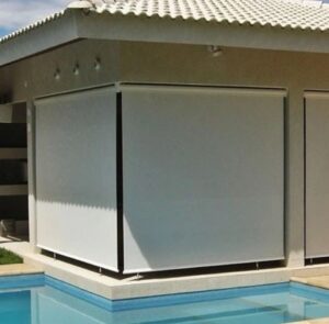 Toldo en caída vertical ideal para terrazas, restaurantes y/o lugares de esparcimiento de fácil y rápida instalación, permitiendo el flujo del aire y manejo de luz natural.