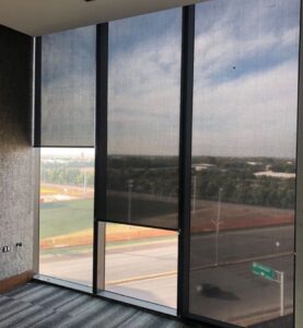 Persiana enrollable ideal para proporcionar cierto porcentaje de luz y privacidad, así como visibilidad al exterior.